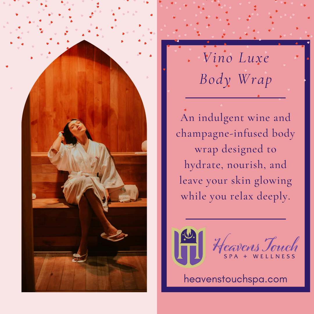 Champagne in the salt room, a vinotherapy body wrap, a one-hour massage, and our Classic Heavenly Facial—pure indulgence from start to finish.